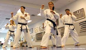 Karate juga dapat digambarkan sebagai seni bela diri, atau metode pertempuran, yang melibatkan berbagai teknik, termasuk blok, pemogokan, penghindaran, melempar, dan manipulasi sendi. Karate praktik dibagi menjadi tiga aspek: kihon (dasar), kata (bentuk), dan kumite (sparring).